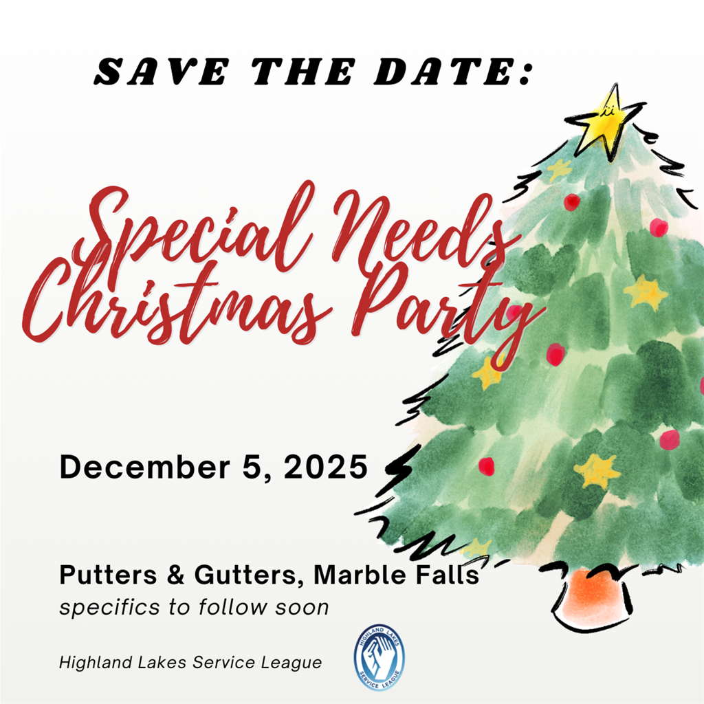 This event brings great joy, and we look forward to it every year. Special thanks to the many donors and volunteers, including Putters & Gutters, Double Horn Brew Pub, Chick-fil-A Highland Lakes, Sonic, Subway, McDonald’s, Wal-Mart, HEB, Tom Morgan, Matthew McCabe, Charles Jones, Traci Shillingburg, and Martelle Luedecke. Their enthusiasm and support of the party illustrates our motto, “Together We Can Do More!”